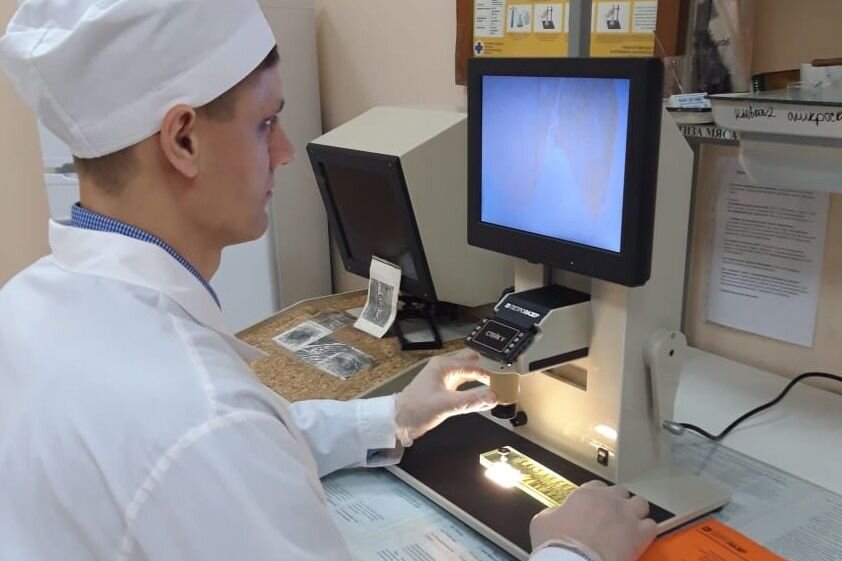Новые приборы для проведения ветсанэкспертизы получили специалисты 24 районных станции по борьбе с болезнями животных, в том числе — тацинская. Ветеринарная служба Ростовской области ежегодно обновляет материально-техническую базу. В рамках государственной программы «Развитие сельского хозяйства и регулирование рынков сельскохозяйственной продукции, сырья и продовольствия» в конце 2019 года были закуплены трихинеллоскопы нового поколения. Они необходимы для выявления личинок смертельно опасного для человека заболевания – трихинеллеза. «Трихинеллез очень опасное заболевание, при обнаружении хотя бы одной трихинеллы мясо и внутренние органы животных подлежат утилизации, — подчеркивает начальник управления ветеринарии Ростовской области Владимир Жилин. — У новых трихинеллоскопов больше экран, что значительно увеличивает объем просматриваемого поля среза продукции. Есть возможность регулировки яркости освещения и записи изображения на карту памяти. Работая на новом оборудовании, специалис