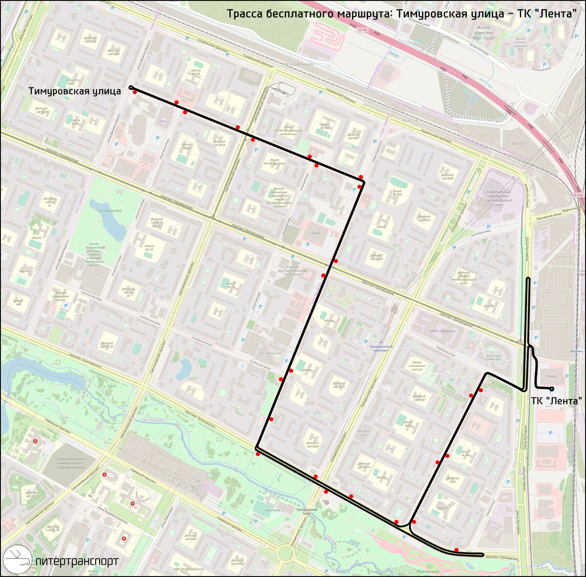 С 1 февраля 2020 года начал работу ещё один бесплатный маршрут к торговому комплексу на улице Руставели. Напомним, к этому магазину в октябре начал следовать маршрут из Новой Охты, впоследствии продлённый до Цветного города.