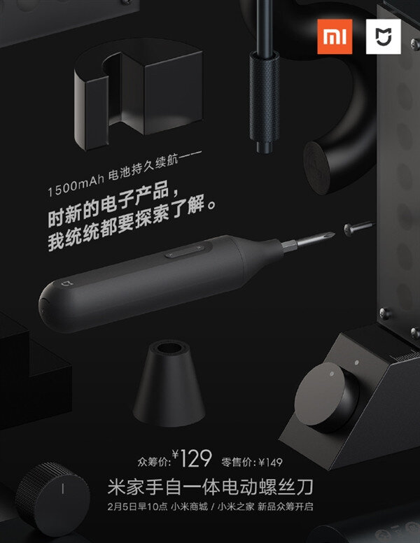 5 февраля на краудфаундинговой платформе Xiaomi запускается новый проект: электрическая отвёртка Mijia Hand-in-one Electric Screwdriver за $18.