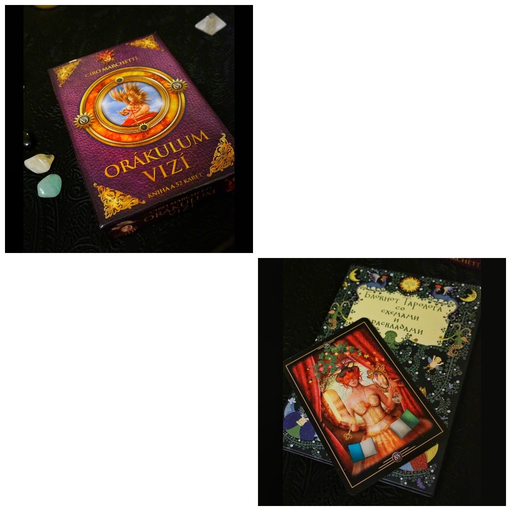 Есть такое направление в картах - как Оракулы. Что же это такое? Это когда есть некая система и количество карт, которые связаны между собой событийно и последовательно, но не являются классически структурированной колодой карт, при этом количество карт в оракуле может быть произвольным, но всегда должно быть начало и конец истории в картах. Также оракул представляет собой набор изображений которые говорят сами за себя и позволяют каждому картоману трактовать карты больше на интуитивном уровне, развивая свои практические навыки через образы и интуицию, так как автор представляет краткое описание к оракул, но этим его предсказательные возможности не ограничиваются. Одним из таких и является красивейший Оракул Вижн или Оракул Видений от известнейшего художника Чиро Марчетти. Данный оракул выполнен в стиле компьютерной графики и при этом настолько насыщен красками, персонами, деталями, что с первых минут знакомства с колодой вызывает ощущение невероятного погружения в какой-то неизведа