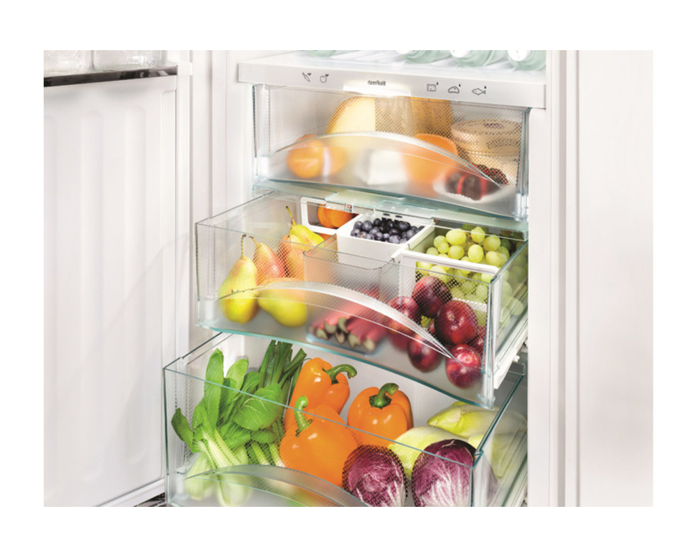 Заморозить или съесть? Кто не задавался этим вопросом перед открытой дверью холодильника? Но далеко не все продукты стоит замораживать, и не всякое их количество можно съесть за один присест. Так где же их хранить? Не факт, что именно так рассуждали в далеком уже 1996 году специалисты немецкой фирмы Liebherr, но именно они впервые предложили выделить зону, более холодную, чем холодильный отсек, и более теплую, чем морозильник. Этот пространство с температурой от -1° до +3°C назвали Biofresh, а позже стали называть зоной свежести. Конструкцию усовершенствовали. В таких моделях, как Liebherr KBes 3750 Premium BioFresh две зоны свежести: Dry Safe с влажностью 50-55% и HydroSafe с влажностью 90-95%. И не зря — ведь некоторые продукты, такие, как фрукты или овощи, нуждаются в высоком уровне влажности, а свежему мясу, рыбе или сыру она противопоказана. В моделях Liebherr PremiumPlus Biofresh разделили пополам и сухую зону, создав в ней отсек с температурой до -2°C специально для рыбы, име