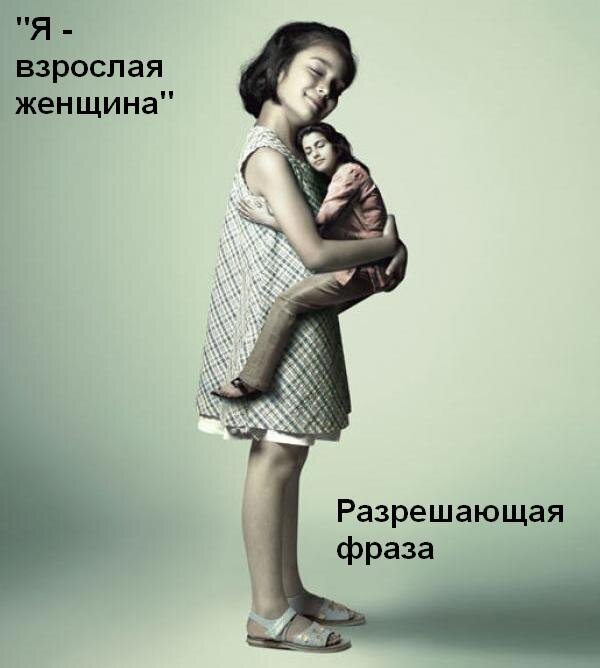 В случае если запрос касается проблем отношений женщины с мужчинами, то я прошу прежде всего произнести фразу «Я – взрослая женщина». Что логично. Если женщина хочет построить здоровые отношения, то она должна во первых осознавать себя полноценной женщиной, во-вторых взрослым человеком.
