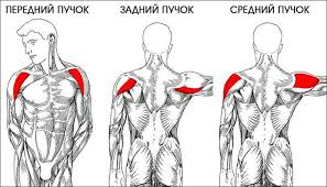 Разделить мышцы плечевого пояса можно на три основных пучка: передний, средний и задний, соответственно передний поднимает руку перед собой вверх, средний- в сторону вверх и задний отводит руку назад. Есть еще мелкие группы мышц, которые мы не рассматриваем, так прокачать целенаправленно и тяжело их не получится, но особое внимание стоит обратить на мышцу вращатель плечевого сустава. Она прячется в глубине и дисбаланс в развитии основных пучков плечевых мышц и вращателя часто приводит к травмированию последнего, что вызывает медленно тлеющий воспалительный процесс и дискомфорт в выполнении тренировочной программы не только про проработке плечевого пояса, но и при выполнении других упражнений, например жим лежа.