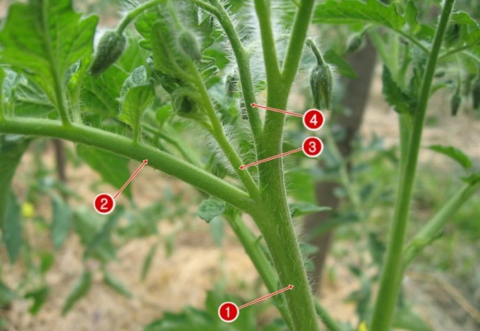 Следует также обратить внимание на частоту расположения цветочных кистей — например, у индетерминантных сортов каждая последующая после первой кисть располагается через три (редко – 2) листа.