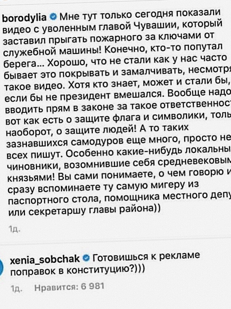 Всем привет! У нас сегодня на канале просто праздник! Пир! Собчак с Бородиной всю ночь гавкали про политику и тд! А сегоодня я бегу вам это рассказывать! У них отношениях всегда были ни о чем..)) а щас так вообще самоубились..;) читаем! Все началось с поста Бородиной и тонкой шутки Собчак (уважаю!)... а дальше понеслось!! Нам с вами на радость!;) Бородина , походу, сначала испугалась на слона тявкать, но потом ей подсказали, что надо написать..) Это она так тонко пошутила про «мась» в конце? Смешно(нет) ...... Ну вот так... А Бородина потом сказала, что ей сказать больше нечего и что ее уделали и размазали..ой че я говорю то... что ей некогда и она больше в этом разбираться не будет! ну вот... скоро будут звёзды без макияжа и фотошопа! Ждите, подписывайтесь! И пишите в комментариях за кого болели;)