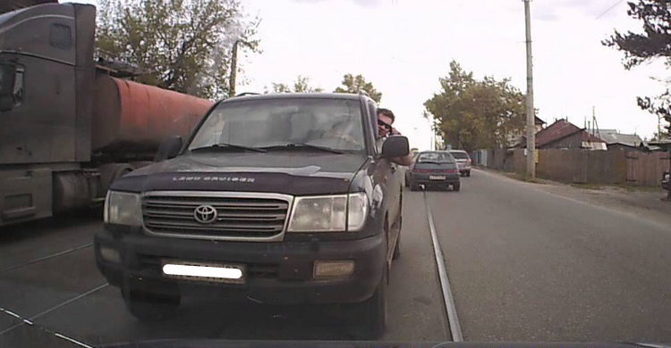 В общем в продолжении предыдущей статьи о видосиках, которые я сохрани еще с лета, хотелось бы рассказать про улицу на которой в час пик вечно собирается ОГРОМНАЯ пробка, в одну сторону... В другую, куда мне обычно и надо, всегда чисто... Вот только из-за того, что в пробке некоторые стоять не хотят, случается так, что водители встречают таких вот деятелей... На крузаках... да и на простых тоже автомобилях... Но мне тогда посчастливилось встретить именно на Лэнд Крузере кадра вот такого... Убери свое корыто, дай проехать! Смотрю, летит... Правей дать нельзя мне было, та машина была ну я и остановился потихоньку в левом ряду не давая ему проехать. Тот уперся в меня и из окна давай орать... При том, что диалог еще даже не начался, а козлом оказался я... -Тебе что, сложно вправо дать? ДАЙ ПРОЕХАТЬ, ГОВОРЮ! И все в таком духе... Поэтому я и хочу узнать у вас, всего навсего ДВА варианта ответа... КАК поступили бы вы? В общем отпишите, КАК вы бы сами поступили? Стали бы тратить время на