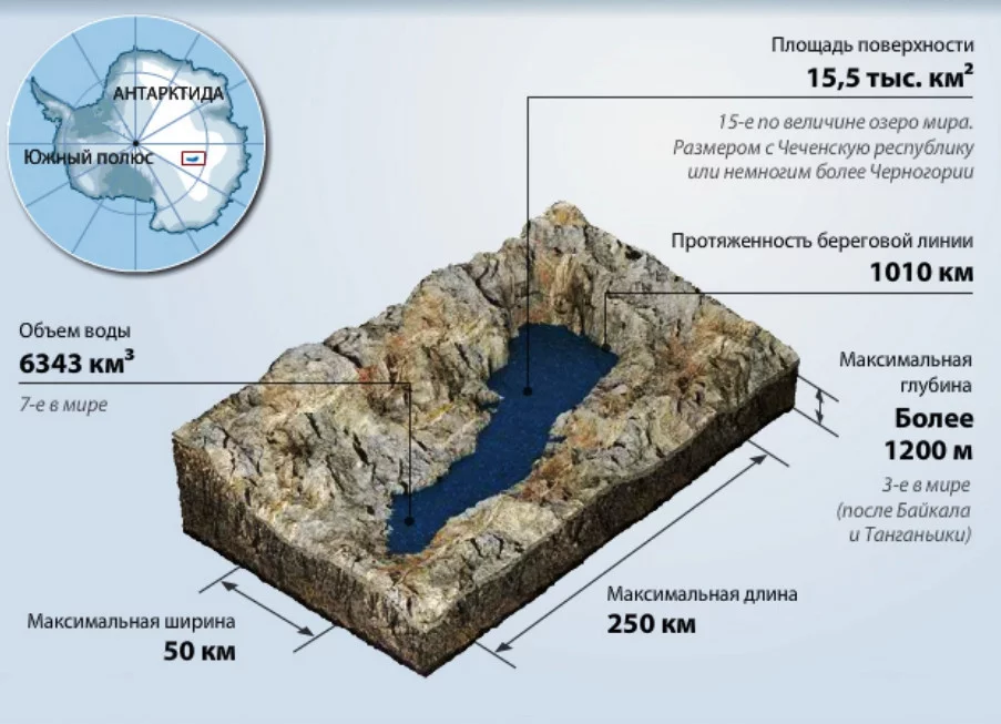 Долгое время учёные предполагали, что под огромной толщей льда Антарктиды нет ничего особенного. Однако, ожидания исследователей не то чтобы оправдались. Они получили гораздо больше, чем ожидали. Озеро Восток Так оказалось, что подо льдами Антарктиды есть целое озеро. Его площадь составляет около 15.500 квадратных километров. Глубина водоёма достигает более 1.200 метров. Это всего лишь на 442 метра меньше, чем в самом Байкале. Звучит ошеломляюще, не правда ли? Возможно, Вы уже успели подумать, в чём же загадка этого озера? Оно уникально тем, что по мнению учёных оно находилось в полной изоляции от земной поверхности на протяжении нескольких миллионов лет. Да и к тому же температура воздуха возле озера достигает -89 градусов по Цельсию, давление льда превышает давление ледяной коры спутников Юпитера, да и находится оно под ледяным щитом почти в 4.000 метров. Именно поэтому исследователи вообще не рассчитывали отыскать в подобных суровых условиях хоть какие-то признаки жизни. Однако, у