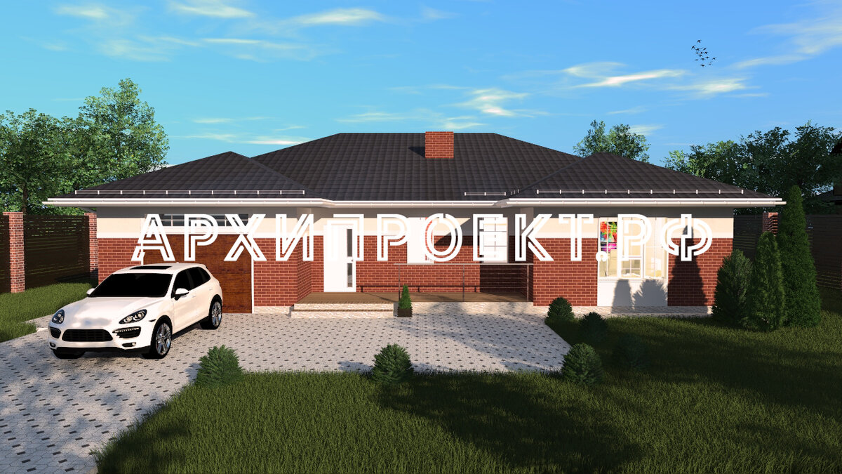 Этот шикарный проект дома подойдет для семьи от 4 до 6 человек. Места хватит всем! ➡ Вам может понравиться проект №37 с гаражом Проект дома до 200 кв м с гаражом — идиллия для счастливой семейной жизни! Фасад дома выполнен из красного кирпича и штукатурки кремового оттенка. Разные материалы разделены декоративным молдингом белого цвета. Окна, водосточная система, софиты — все коррелирует с домом. Получайте каждый день новые проекты домов, подпишитесь на канал! Конструктив дома В доме есть гараж оптимальной площади для одной машины. Входная группа дома находится между двумя выступами, образующими спальню и гараж. Кровля дома вальмовая серого цвета. ➡ Нравятся проекты с симметричным фасадом? Оцените проект №33 112 кв м Терраса закрытого типа отлично дополняет архитектурный стиль дома и добавляет дому дополнительные очки в удобства и комфорта. Окна террасы белого цвета с горизонтально вертикальной раскладкой в классическом стиле. Превосходная сочетаемость цветов и уникальный стиль — вс