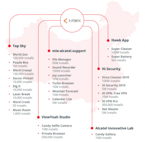 Недавно эксперты ESET заявили, что 99% всех мобильных вирусов ориентированы на Android-устройства. Очередным подтверждением этому является отчёт, согласно которому в Google Play находилось 24 приложения с миллионами загрузок. Все они признаны потенциально вредны для пользователей телефонов. Список приложений очень обширный: среди них есть игры, браузеры, календари, антивирусы, файловые менеджеры, прогнозы погоды, лаунчеры, VPN-сервисы и прочие утилиты. Все они выпускались шестью разными разработчиками, но следствие показало, что они связаны с одной китайской компанией Shenzhen HAWK. Экспертов по безопасности насторожил тот факт, что все эти программы запрашивают очень много разрешений, не связанных с их функционалом. Так, шесть из них нуждаются в доступе к телефону, что автоматически позволяет им совершать звонки и отправлять сообщения даже без ведома пользователя. 15 приложений требуют доступа к GPS, чтобы определять местоположение пользователей, и личным данным на устройстве. На