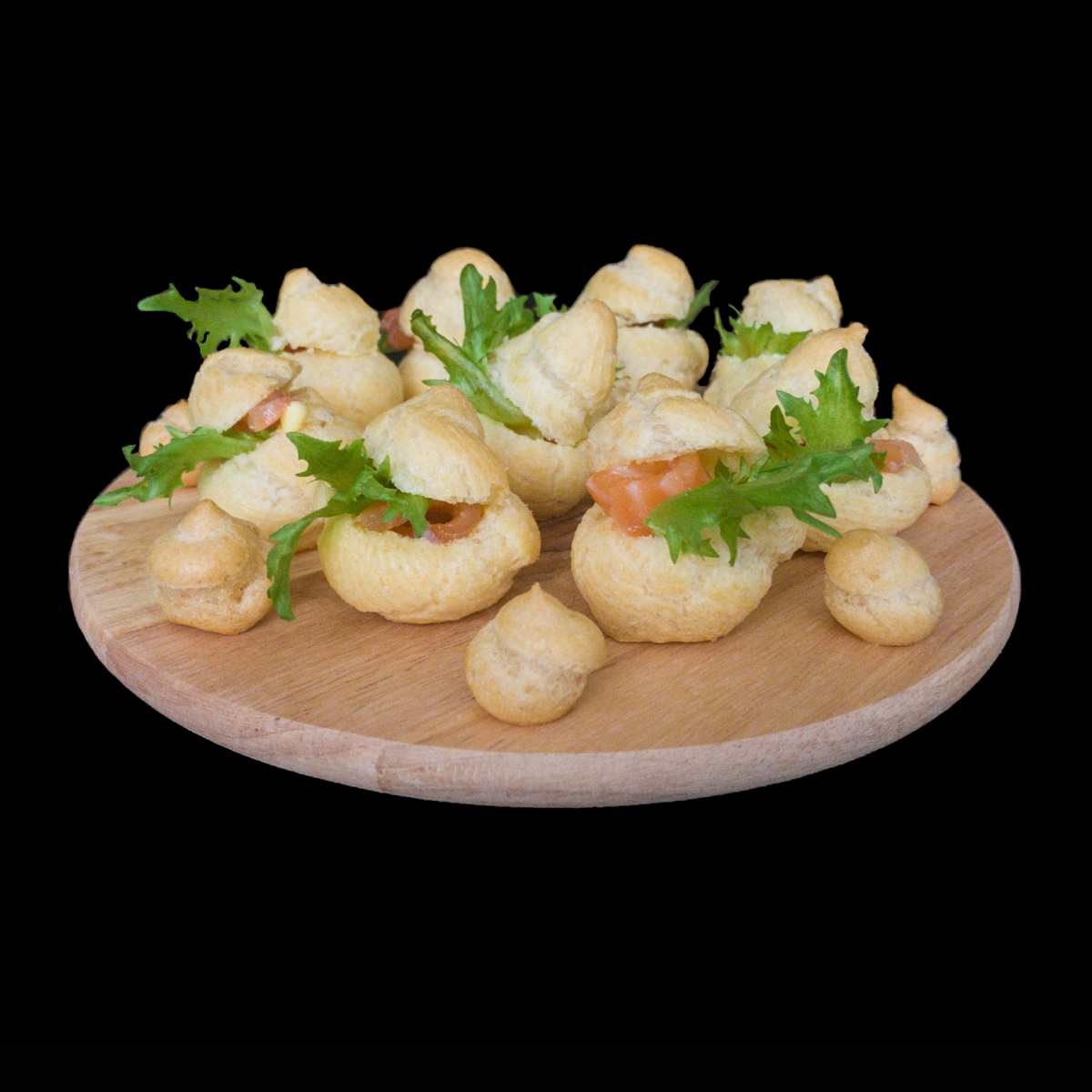 🔹Листья салата Приготовление: Смешать воду и растительное масло, довести до кипения и добавить муку постоянно помешивая массу. Снять с огня и ввести в тесто 3 яйца (по очереди). С помощью кондитерского мешка отсадить небольшие профитроли и поставить ❗️ в разогретую ❗️до 220 градусов духовку минут на 10-15 (в зависимости от размера), затем убавить до 160 и выпекать ещё минут 15. Достать наши «эклерчики», остудить и начинить по своему усмотрению) У меня был стандарт: сливочное масло, зелень, красная рыба и сливочное масло, зелень и икра) Приятного аппетита!!!