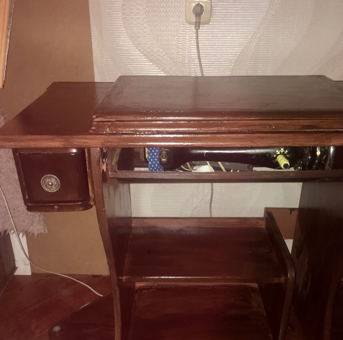 Вообще-то цель ее покупки была не швейная. Ее присмотрел муж, для каких-то там своих дел, какой-то инструмент крутой из нее сделать. Но на ему не подошла, а вот я в нее влюбилась с первого взгляда. Вернее, в столик.