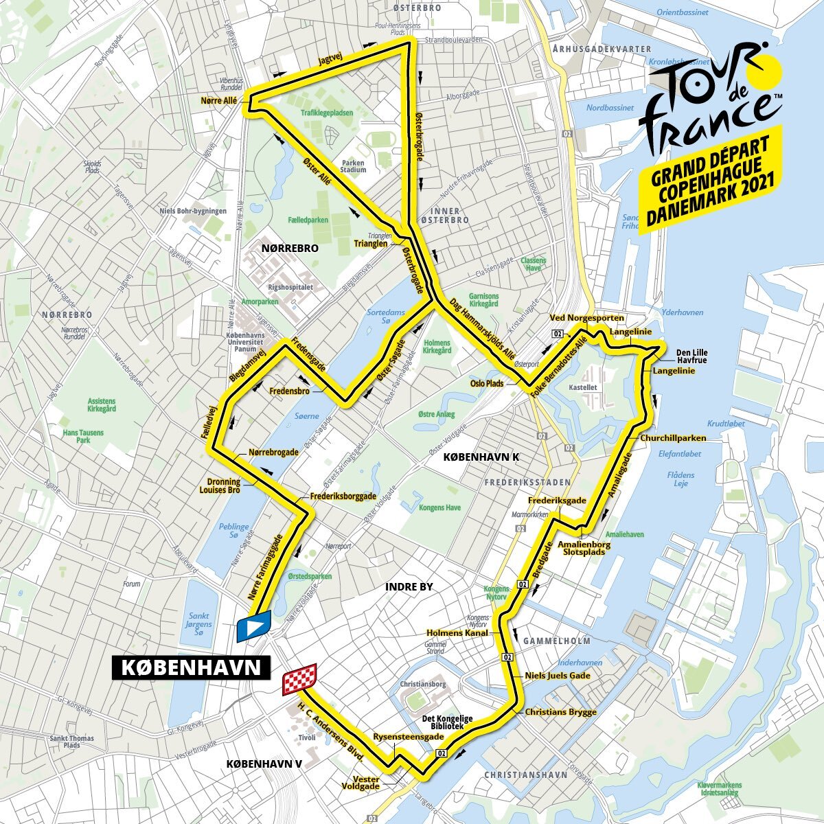 В 2021 году «Тур де Франс» на три дня примет Дания — об этом сообщил директор гонки Кристиан Прюдомм, представив маршрут первых трёх дней велогонки. 2 июля 2021 года гонщики появятся в Копенгагене, чтобы разыграть 13-километровую гонку с раздельным стартом, с тем, чтобы следующие два дня проехаться по окрестностям Ниборга и Сённерборга. Несмотря на дальность 199 и 182 километра соответственно, второй и третий этап «Большой петли» не составят большого труда для пелотона, предоставив возможность спринтерам проявиться себя. По словам Прюдомма, Копенгаген был выбран не случайно — это «лучший велосипедный город в мире». Второй этап будет интересен с точки зрения географии — пелотон проедет через 18 мостов на пути из Фюна в Силанд. По ходу третьего этапа гонщикам предстоит преодолеть три подъёма, но в любом случае этап закончится спринтом. «Первые несколько дней на «Тур де Франс» часто задают тон и атмосферу гонки, которая превращается в то, что гонщики хотят сделать из нее на протяжении с