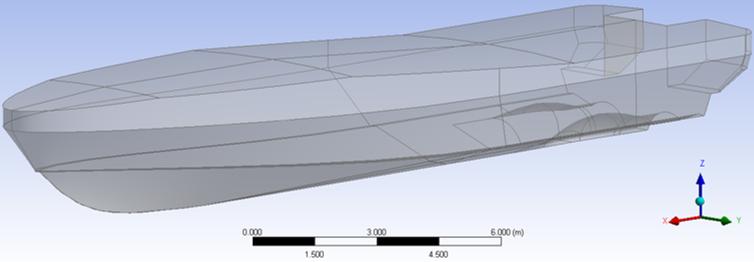 На подготовительном этапе расчета создана твердотельная геометрическая модель корпуса судна в модуле ANSYS DesignModeler, для последующей генерации сетки. В модуле ANSYS Structural определены моменты инерции корпуса судна - эти данные необходимы для последующего расчета с подключением 6-степенного решателя.