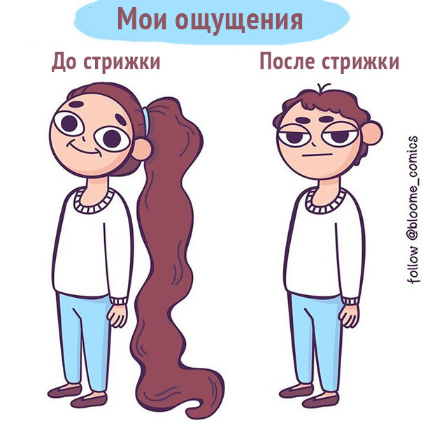 Иллюстратор под псевдонимом Bloome создает смешные и актуальные комиксы о том, как живется девушкам и женщинам. 1. Когда вроде хотела новую стрижку и даже добровольно в парикмахерскую пришла, а все равно это дурацкое чувство… 2. С косичками ситуация не лучше. 3. Главное – чтобы никто не снимал на “выдохе”… 4. Взрослая жизнь – она такая. 5. Хорошо хоть зимой можно немного расслабиться. 6. Хотя все равно найдутся “добрые” друзья, которые сделают вот так. 7. Это было идеальное свидание, а потом я проснулась. 8. Когда хочешь быть красоткой, но нет. 9. И снова мимо. 10. Все мы начали жизнь с понедельника… 20 миллионов раз! 11. Этот момент — словно миллионы фейерверков.