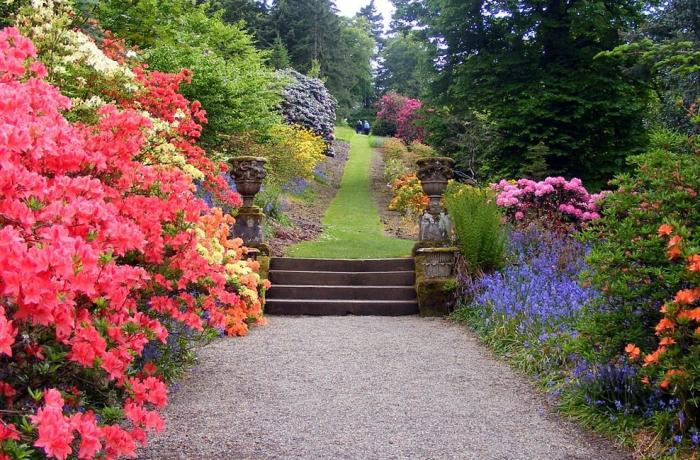На фотографии изображена правильно организованная садовая дорожка. Четко видна разница уровней дорожки и газона (ниже как раз на 1,5-2 см), что обеспечивает долговечность, безопасность (отсутствие наледи в период низких температур), аккуратность и эстетически приятный облик мощению.