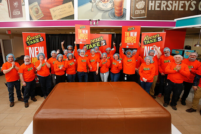 Reese's - Американская фирма шоколадных продуктов, 31 января 2020 года побила предыдущий мировой рекорд поставленный компанией SNICKERS® 2,5 Тонный, шоколадный батончик, с длинной более 2,5 Метров, шириной 1,5 метра, И высотой 0,6 метра шоколадный батончик "Resee's take 5" Новый мировой рекордсмен Более 5 дней и 40 рабочих (компании Hershey's) потребовалось для создания этой гигантской шоколадки Его предшественник компании SNICKERS® был создан всего двумя неделями ранее -16 Января 2020 Его вес более двух тонн, и был эквивалетно равен 41,000 стандартных ореховых батончиков Также оба этих рекорда Были приурочены к финалу чемпионата по американскому футболу лиги NFL - Super bowl Super Bowl - самое известное и популярное событие для жителей США, на котором выступают самые ищвестные артисты, как например в этом году Shakira и Jennifer Lopez