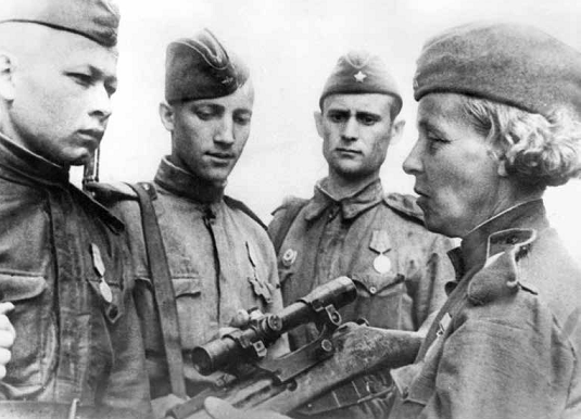 В 41-м Петрова Нина Павловна пришла в Куйбышевский райвоенкомат города Ленинграда. Там заявила: "Я снайпер. Дайте оружие и отправьте на защиту Ленинграда". Военком в ответ заявил: "Вам 48 лет. В вашем возрасте мы не имеем права призвать"-" Право защищать свою Родину имеет каждый! Я в партии и спортсмен, стреляю получше любого бойца!" Женщина своего добилась.