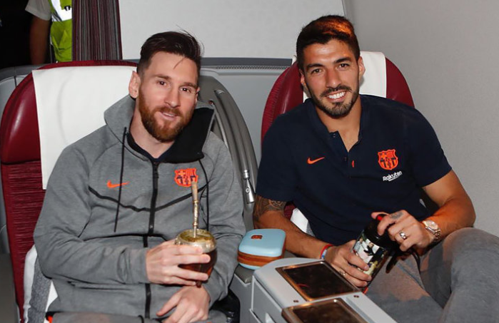 Я приветствую догогие друзья !!! Сегодня я хочу вам рассказать о самом любимом напитке игроков ФК Барселона.Как вы думаете, что уругвайцы прихватили с собой в Россию? Ответ прост!!!!!! Молоко, айву, сладкий картофель и 180 килограмм йерба мате, подсушенных листьев, из которых и получается напиток, без которого Суарес и Месси не можить жить. Как видно из селфи сделанных в самолете в руках игроков необычный сосуд! Этот сосуд называется калебас -традиционный сосуд для приготовления и питья мате, тонизирующего напитка народов Южной Америки и готовили их из тыквы. Познакомившиеся с напитком испанцы начали производить калебасы также из других материалов, таких как древесина дуба, кебрачо, а также фарфора, серебра и некоторых других материалов. Особенность калебаса Мести в том ,что она серебренная с необычной граверковкой! Из интервью с Месси стало ясно ,что даже победу игроки команды отмечают мате.А какой самый любимый напиток сборной России напишите в комментариях и подпишитесь на кан