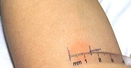 Дело в том, что люди, страдающие туберкулезом, инфицированные, и те, кто здоров, диаметрально противоположно реагируют на туберкулин. Реакция эта схожа с проявлениями аллергии: если в человеке есть микроб-возбудитель туберкулеза, туберкулин вызывает определенный неадекватный аллергический иммунный ответ, если палочки-возбудителя у ребенка нет, ничего не происходит.