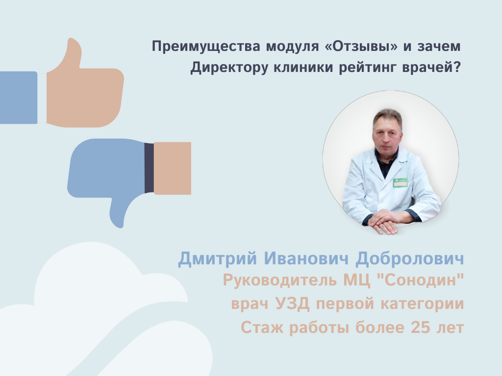 - отслеживать отзывы пациентов и оценивать работу врачей и клиники;