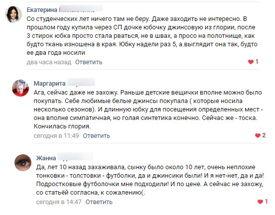 Иногда я пишу о российских магазинах масс-маркета. Например, буквально сегодня мы в группе обсуждали угасшую славу Gloria. И отзывы подписчиц о ней к сожалению, не брызжут оптимизмом: