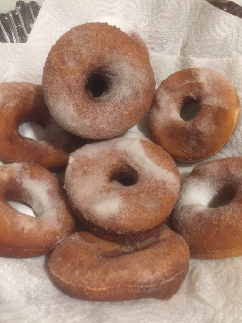 Рецепт, который сильно не ударит по вашему кошельку! Если захотелось чего-то сладенького к чаю или кофе, то это идеальный для вас вариант. Расчёт примерный на 20 пончиков. Ингредиенты: 1.Теплое молоко 250мл. 2.Сахар 2 столовые ложки. 3. Соль 0,5 чайной ложки 4. Дрожи быстро действующие 1 пакетик 5. На глаз сливочного масла или маргарин 6. Яйцо 1 штука. 7. Мука 350 грамм. Способ приготовления: 1. Замешиваем тесто обычное, даём постоять в районе часа. 2. Раскатаем пласт с толщиной примерно 1см. 3. В нашем пласте вырезаем стаканчиком кружки и какой-нибудь маленькой крышкой делаем в центре отверстие. 4. Обжариваем в масле наши заготовки пончиков до золотистого цвета с двух сторон. Дополнение: Если есть шоколадка, то растопим её и окунем наш пончик в шоколад. Вариант подешевле : Посыпаем сахарной пудрой просто сверху нашего пончика.