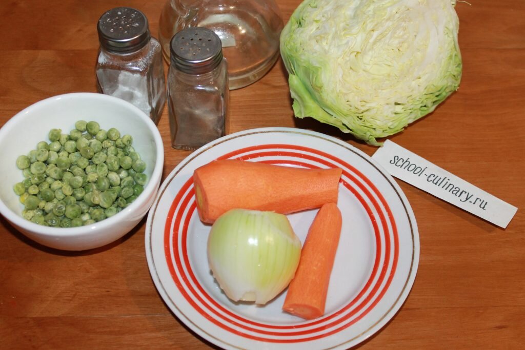 Молодая капуста с зеленым горошком, луком и морковью тушится с растительным маслом и специями в небольшом количестве воды. Получается очень аппетитно, ароматно и сочно. Времени уходит немного. С рецептом справится и начинающая хозяйка. Хорошая еда для разнообразия меню. Подойдет для гарнира или как самостоятельное блюдо.