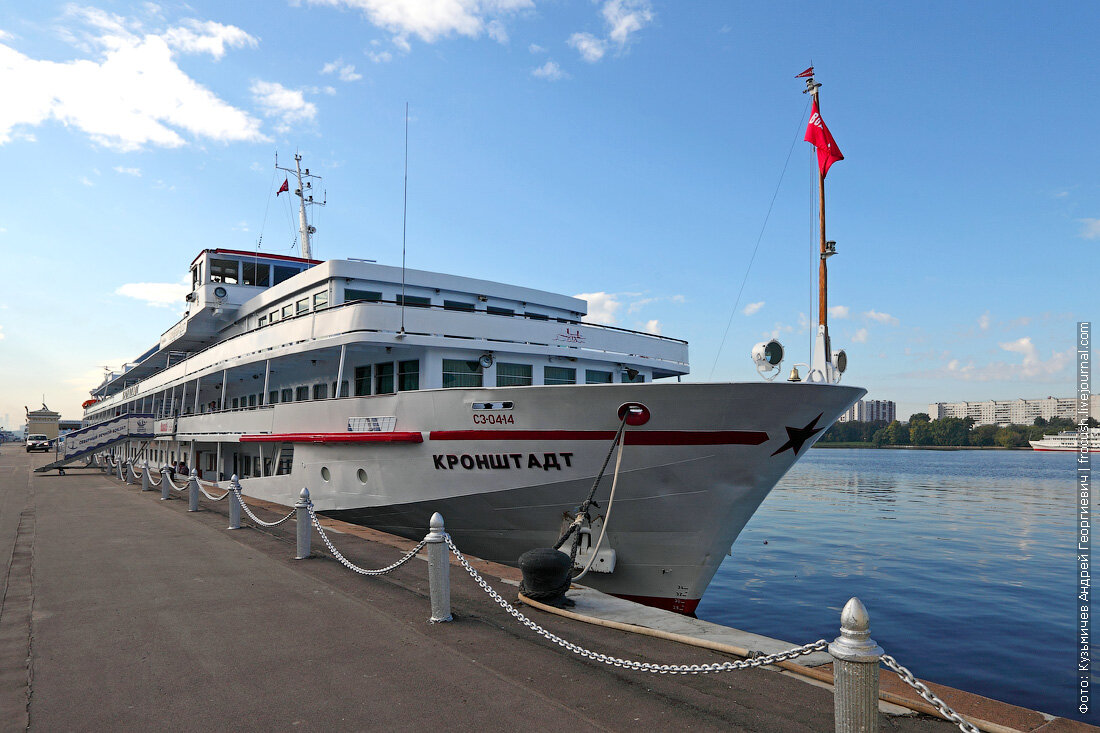 Теплоход «Кронштадт» (проект 301) построен в 1979 году в Германии, развивает скорость до 26 км/ч, длина судна 125 м, ширина 16,7 м, осадка 2,76 м, пассажировместимость 272 человек. Прошлое название теплохода «Александр Ульянов».