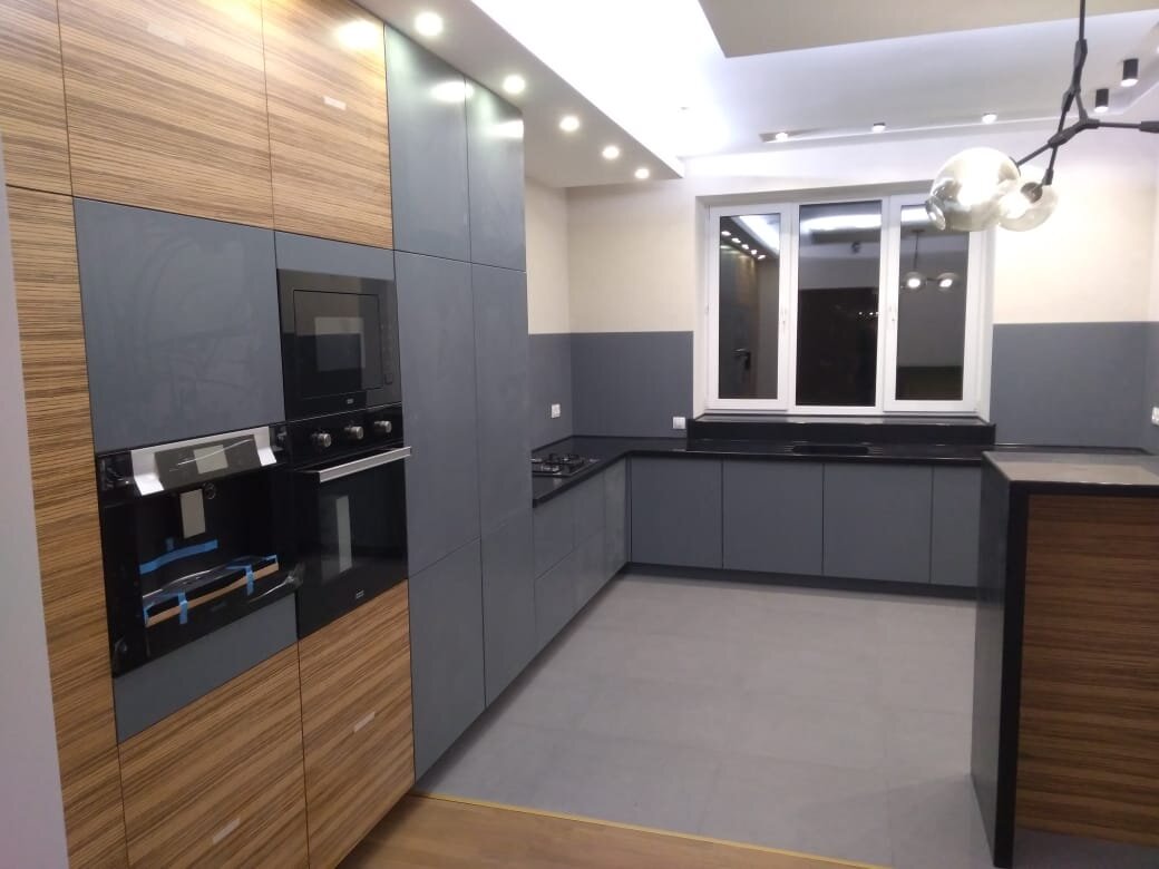 История одной кухни. П-образная планировка со шкафами и барной стойкой (топом).