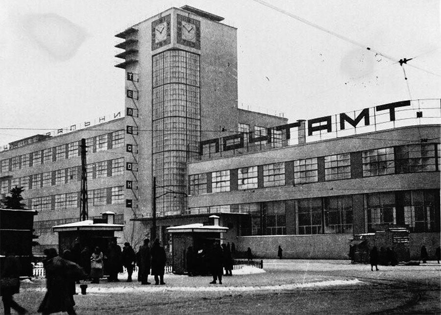 Это одна из первых работ Аркадия Мордвинова. Он разработал проект еще во время обучения в Московском высшем техническом училище (МВТУ) и победил с ним на конкурсе Наркомпочтеля.