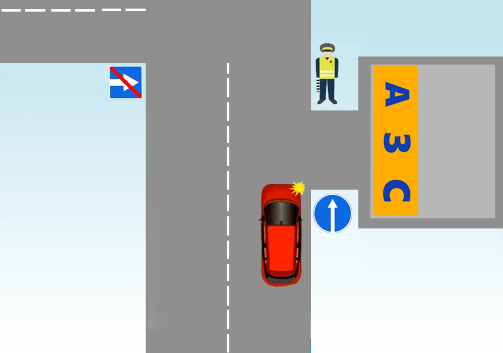 Можно ли повернуть на заправку, если висит знак "только прямо"?