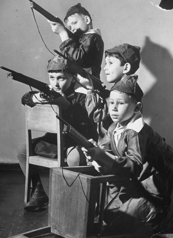 На эти кадры невозможно смотреть с холодным сердцем... Сегодня, когда тема войны стала как никогда актуальна, мы хотим представить фотографии, которые еще раз доказывают: в войне всегда страдают самые невинные... Воспитанники одного из московских детских садов играют в войну. 1941. Автор: Маргарет Бурк-Уайт. Источник: skif-tag.livejournal.com. Учащиеся 3-го класса женской школы № 216 Куйбышевского района Ленинграда готовят кисеты в подарок фронтовикам. 1943. Ученицы 4-го класса 47-й школы г. Ленинграда, награжденные медалями «За оборону Ленинграда». Ноябрь 1943. Автор: Георгий Коновалов Мальчики-сборщики трофеев с хутора Синеоковский (Сталинградская Область). Слева направо: Сережа Землянский, Шура Величенко, Шура Иващенко и Володя Поломарщук. Сталинградская область. Февраль 1943, Будапешт, Венгрия. Автор: Евгений Халдей.