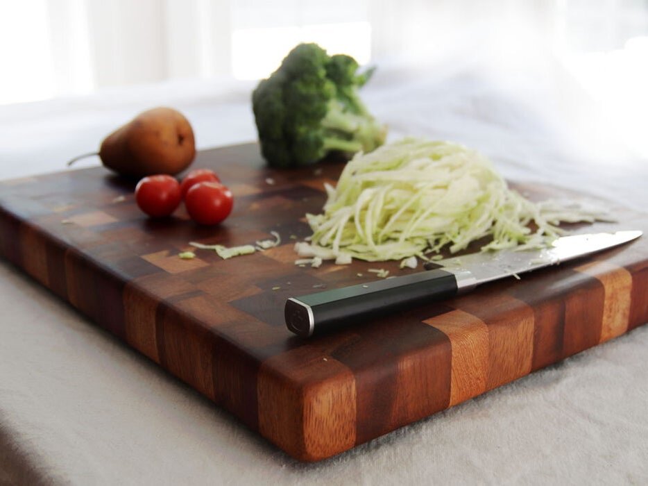 Эта толстенная разделочная доска была сделана из тропических пород деревьев. Если вы зайдете в модный кулинарный магазин, вы увидите там прекрасные разделочные доски, однако цены будут кусаться, и жаба нападет, и душить будет. Обычно эти доски сделаны из редких пород деревьев, как минимум, ценных. А если заготовки для доски купить самому? Нет, бесплатно не получится, если только вы не профессиональный столяр и у вас совершенно случайно не разбросаны обрезки дорогущих пород где попало. Шаг 1. Фрезеруем собранный материал. Собрал все что было, по сусекам да по амбарам. Получилось около 4 метров, в происхождении нескольких досок я не уверен. Первым шагом в этом процессе - выравниваем и подгоняем. Поэтому сначала пропускаем всю древесину через фуганок. Шаг 2. Нарезаем древесину для разделочной доски Настоящая задача здесь - использовать как можно больше разных пород, оставив как можно меньше отходов. Придется поломать голову, потому что все заготовки имеют разное сечение. Шаг 3. Определя