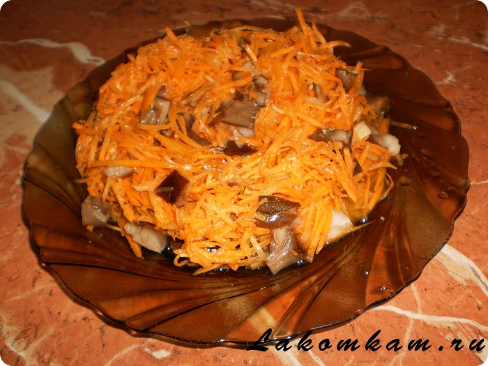 Острый салат из маринованных опят с морковью по-корейски для любителей «горяченького».