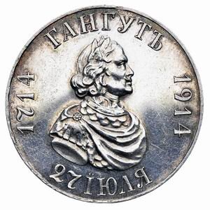 Гангутский рубль 1914 был самой последней памятной Российской монетой, отчеканенной в царский период. Сражение при Гангуте в 1714 — это ярчайшая морская победа великой России у мыса Гангут, актуальность этого сражения особенно остро чувствовалось в начале прошлого века. Выпуск монеты рубль1914 Гангут приурочили к спуску дредноута «Гангут» на воду. Торжества 1914 года должны были ознаменовать возрождение после Цусимского поражения былой славы Русского флота.
