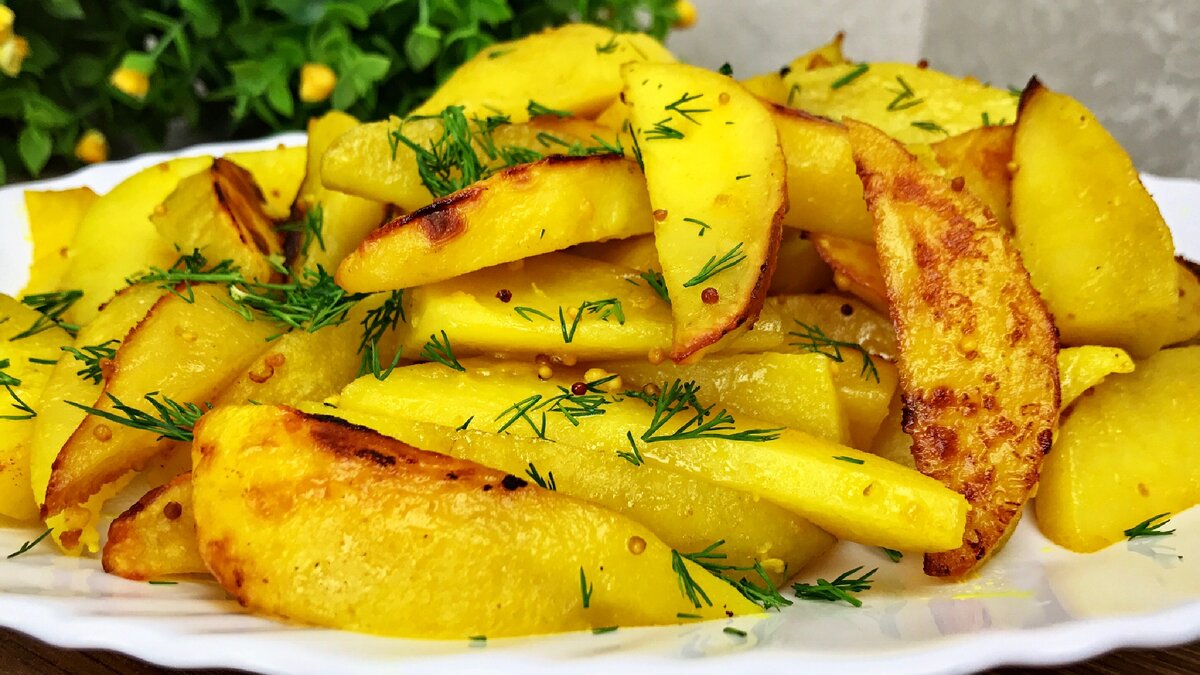Очень вкусная картошечка, запечённая в рукаве в духовке в горчичном маринаде.