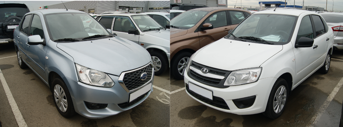 Приветствую вас, дорогие читатели! На днях позвонил друг и попросил меня ему помочь подобрать автомобиль на вторичном авторынке. По причине того, что сам он в технической части автомобиля плохо разбирается. На мой вопрос определился ли он с маркой желаемого авто, ответил что да. Для приобретения рассматривает автомобиль марки Лада Гранта или Датсун Он-До (с механической коробкой передач). Мотивируя свое решение имеющимся скромным бюджетом в 350 000 рублей. Лада Гранта и Датсун Он-До одинаковые по технической части автомобили, разница лишь в дизайне и бренде, под которыми они продаются. Отказывать в помощи я не стал и мы отправились на авторынок. На стоянке авторынка находилось всего две подходящих по всем параметрам машины: Datsun on-DO и LADA Granta. Лада Гранта 2017 года выпуска с пробегом около 75 000 километров за 422 000 рублей. Датсун ОН-До 2014 года выпуска с пробегом около 80 000 км. стоимостью 360 000 р. В связи с имеющимся у моего друга бюджетом, Лада Гранта оказалась не "