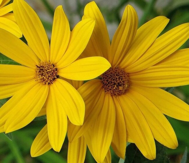 Когда то это растение росло повсеместно - в деревнях и городах. Да и сейчас его часто можно встретить вдоль дорог, в канавах, в оврагах. К нему привыкли и уже не замечают. Достигает высоты двух и более метров с небольшими желтыми цветами, похожими на ромашку. Его многие считают сорняком, так как быстро разрастается и занимает большие площади. Это все про топинамбур или земляную грушу. Вот и у нас в овраге, на краю которого стоит наш дом, растет это растение. Мы конечно знали, что оно съедобно, но относились к этому скептически. Однажды осенью, когда сезон уже был закрыт, заехали мы зачем-то вечером на дачу и решили остаться на ночь. И так оказалось, что кроме тушенки случайно оставшейся, поужинать нам было нечем. Пока я пыталась хоть что то придумать, муж накопал клубни топинамбура(похожи на имбирь). Мы их начистили( муторное занятие),отварили и скажу честно, ели это блюдо с опаской. Вкус напоминал молодую картошку, только чуть водянистую. Так мы познакомились с этим овощем-корнеплод