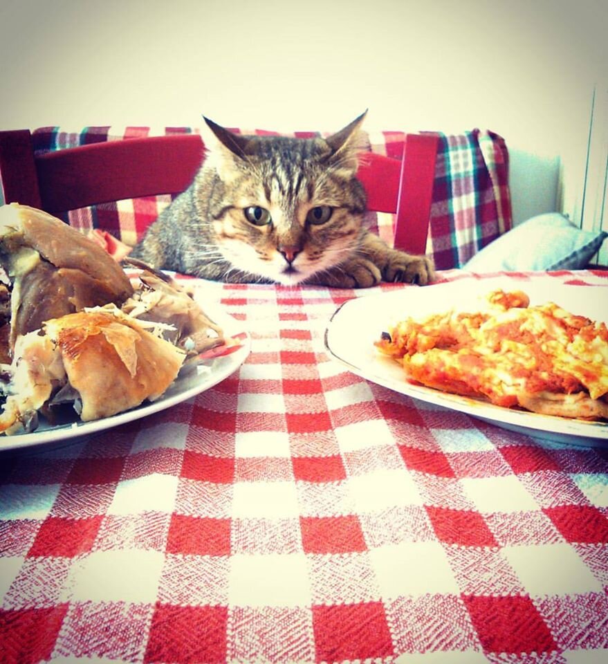 Моя подруга Карла - итальянка. Она живет в Асколи-Пичено со своим семейством. Ей приходится не только работать, но и готовить еду в огромном количестве для своей большой итальянской семьи. Это любимая кошка моей подруги! Ей можно всё. Она постоянно сидит на столе и Карла её не прогоняет. Я спрашивала, почему такой почёт для кошки? Но у подруги любимица на первом месте и я так и не смогла убедить Карлу, что кошкам не место на обеденном столе. Покажу несколько блюд, которые готовит Карла Это аньолотти - равиоли с мясом, Карла очень часто делает разные виды итальянских пельменей. Начинки бывают разные, а зачастую совершенно нереальные на наш взгляд. Карла никогда не замораживает свои равиоли. Ей просто нечего замораживать - всё сразу съедается! " Я выросла, глядя на бабушку, которая использовала яйца и муку без остановки.... длинный деревянный стол , чтобы тянуть тесто ..... и я помогала ей с начинкой в подготовке аньолотти.