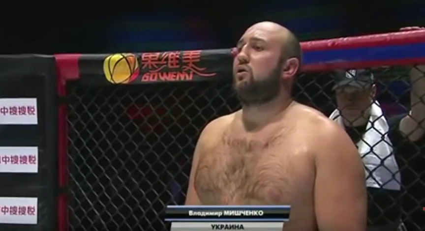Большой шкаф по имени Владимир Мищенко хотел показать, как надо круто бороться да не вышло, Евгений Ерохину не надо ничего показывать у него 20 побед и 7 проигрышей. Владимир же вобще какой-то не добоец, он проиграл на два боя больше, чем выиграл (8 победи против 10 поражений). Что будет делать большой чувак в ММА? Правильно будет пытаться задавить своей большой тушей. Несколько минут толстяк никак не мог подступиться к Евгению в стойке и решил, что в партере у него больше шансов. Зря он на это надеялся, русский брыкался как бешеный и и прижал большого дядьку к себе по сильней. Когда Владимир попытался высвободиться из хватки, Евгений поменялся местами с украинцем. Евгений начал наносить удары один за одним. Если с начало они были неуверенные, то в конце бушующий ураган сокрушительных ударов смог остановить только рефери! Читайте также: Украинский "качок" вышел против русского Украинский боксер оскорбил русских за что и