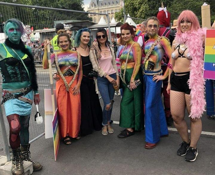 Пока мы глазели по сторонам, вдруг поняли, что центр города начал значительно оживать. Затем обратили внимание на радужные флаги, развешенные по всему городу. Мы не сразу поняли, что это значит, и долго терялись в догадках. Потом в поле зрения стали попадаться различные субъекты, глядя на которых с трудом разберешь, какого они пола. И нас осенило - Вена готовится к гей-параду. Мы выяснили, что, действительно, в Вене проходит «радужный фестиваль» Vienna Pride 2018. На две недели столица Австрии стала центром для геев и лесбиянок страны. В театрализованных костюмах, с голым торсом и грудью мужчины и женщины, парни в облегающих мини-шортах и на высоченных каблуках гордой и кокетливой походкой вышагивали по улицам Вены. Мы, ранее видевшие такое только по телевизору, с интересом взирали на это необычное для нас шоу. Главная улица была освобождена от транспорта, народ все прибывал и прибывал. Прибыла и полиция. На парад шли целыми семьями, как традиционными, так и нетрадиционными, в действе принимали участие не только взрослые, но и дети, размахивая радужными атрибутами парада.