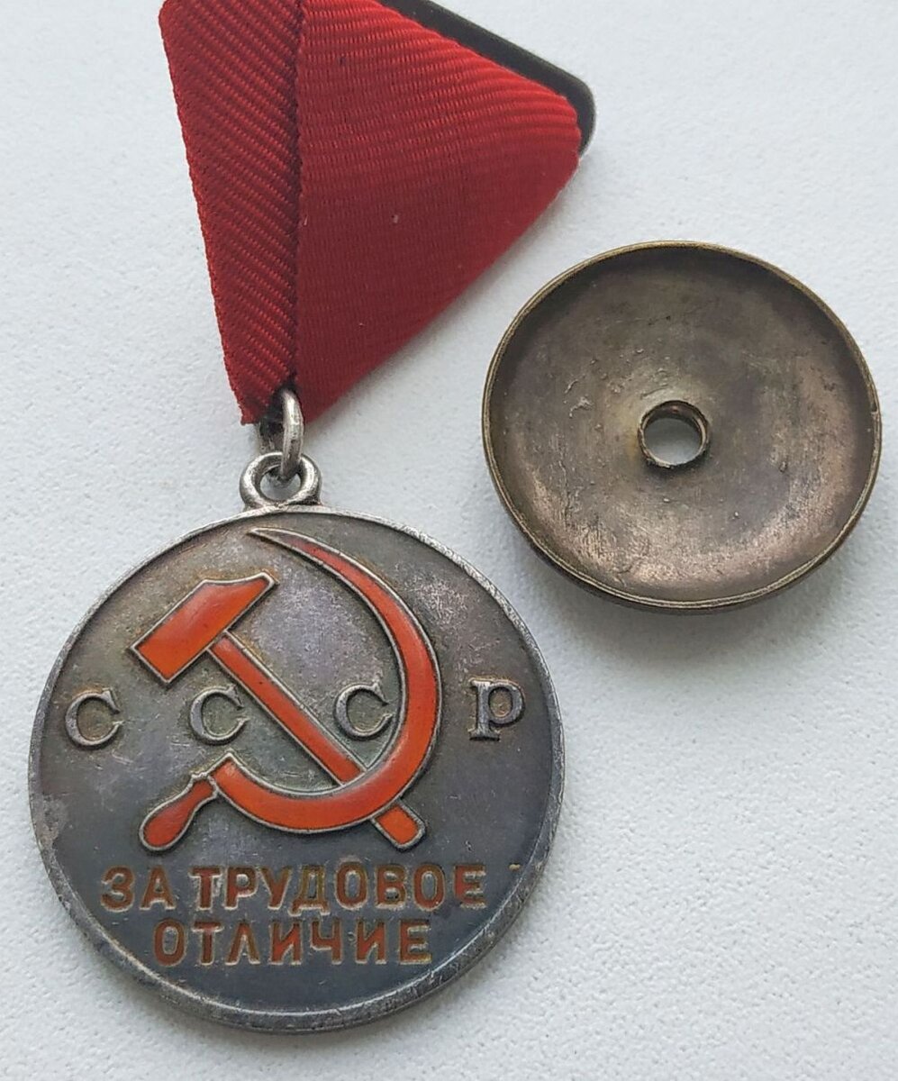 Медаль учреждена Указом Президиума Верховного Совета СССР от 27 декабря 1938 года. Медаль "За трудовое отличие" учреждена для награждения за ударный труд, достижение высоких показателей в работе. Первый тип медали вручался с момента своего учреждения 27 декабря 1938 года до появления Указа от 19 июня 1943 года. Медаль имела подвесную колодочку треугольной формы. Верхний край колодки имел длину 33 мм, боковые края - по 32 мм. Вдоль верхнего края колодки проходит узкая щель, сквозь которую продевалась лента красного цвета, обтягивающая колодку с лицевой стороны. Длина щели 27 мм, ширина - 1,5 мм, расстояние щели от края колодки - 1,5 мм. На оборотной стороне колодки имелся нарезной штифт и круглая прижимная гайка для крепления медали к одежде. У нижнего края подвесной колодки имеется небольшое отверстие, сквозь которое продевается соединительное кольцо. Это кольцо, в свою очередь, соединяется с ушком в верхней части медали. У первого типа медали ушко всегда представляло собой отдель