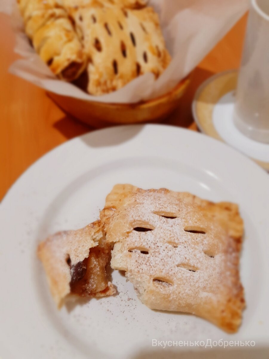 Что может быть особенного в слойках с яблоками? - скажут многие, однако все зависит от нюансов и мелочей, которыми многие часто пренебрегают, в нашем случае это специи, которые нельзя не добавить для непревзойденного вкуса. Мой сын ест эти слойки так: разламывает верхний слой теста, съедает начинку, все остальное оставляет. ****************************************** Ингридиенты: Приготовление: 2. Яблоки почистить, порезать кубиками. На сковороде топим сливочное масло, отправляем яблоки, сахар и карамелизуем до полуготовности яблок. Здесь главное не перетушить, чтобы блоки не превратились в кашу. 3.Готовые яблоки перекладываем в отдельную миску и добавляем остальные ингридиенты: имбирь, корицу, ванилин, изюм, коньяк, ореховую крошку. Все перемешиваем, аромат у нашей начинки просто невероятный! 4.Слоёное бездрозжевое тесто предварительно размораживаем и разрезаем так, чтобы удобно было сформировать слойку, я разрезаю на широкие полоски. 5. На одну половину теста выкладываем нач