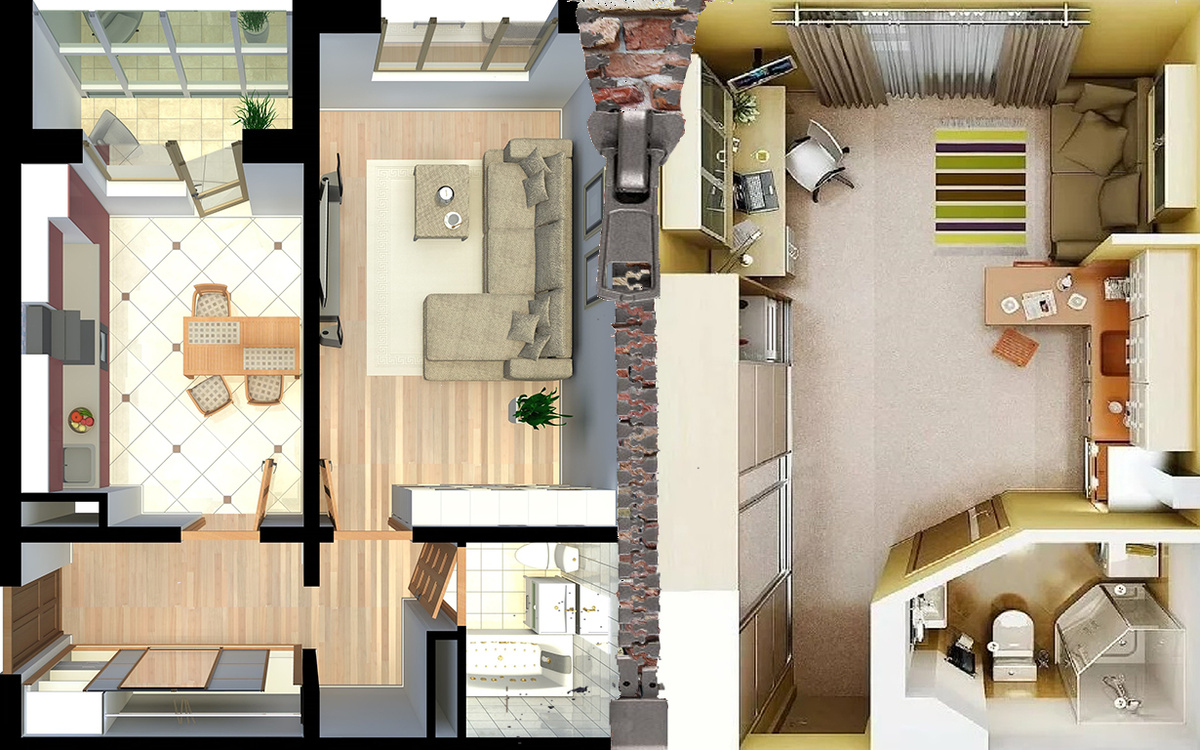Для начала давайте внесем ясность в то, что такое квартира студия. В начале задумка квартиры студии была такова, что жилое пространство, прихожия и кухня составляют единое целое. Мы все привыкли видеть квартиру-студию с небольшим помещением с изолированной комнатой под санузел. Сейчас же стали делать студии и с перегородкой для прихожии. К сожелению в таких студиях нет дополнительных окон как в квартире-однушке, у вас есть одно окно, небольшой зал ну и небольшое выгараженное помещение под туалет с ванной, но чаще всего места там хватает под кабинку с душем. Соответственно цена на такие площади заметно отличается от обыкновенной однушки. Что касается площади, то средняя площадь составляет 28 метров, хотя можно встретить умельцев которые умудряются вытянуть по максимум, деля такие площади на две части, и сдавать. Средняя площадь однушки 35 метров. Если сопоставлять цены на студии и однушки, то разумеется студия всегда будет стоить дешевле. Конечно же мы привыкли, чтоб кухня была отдел