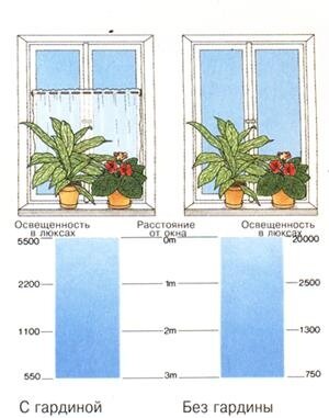Если, к примеру, та же фиалка отлично растет на подоконнике с гардиной, то станет ли она хорошо расти в метре от этого окна на столе, выполняя роль "живого букета"? А выживет ли светолюбивая пальма (которую эволюция готовила к жизни под палящим солнцем!) в вашем углу "напротив окна"?