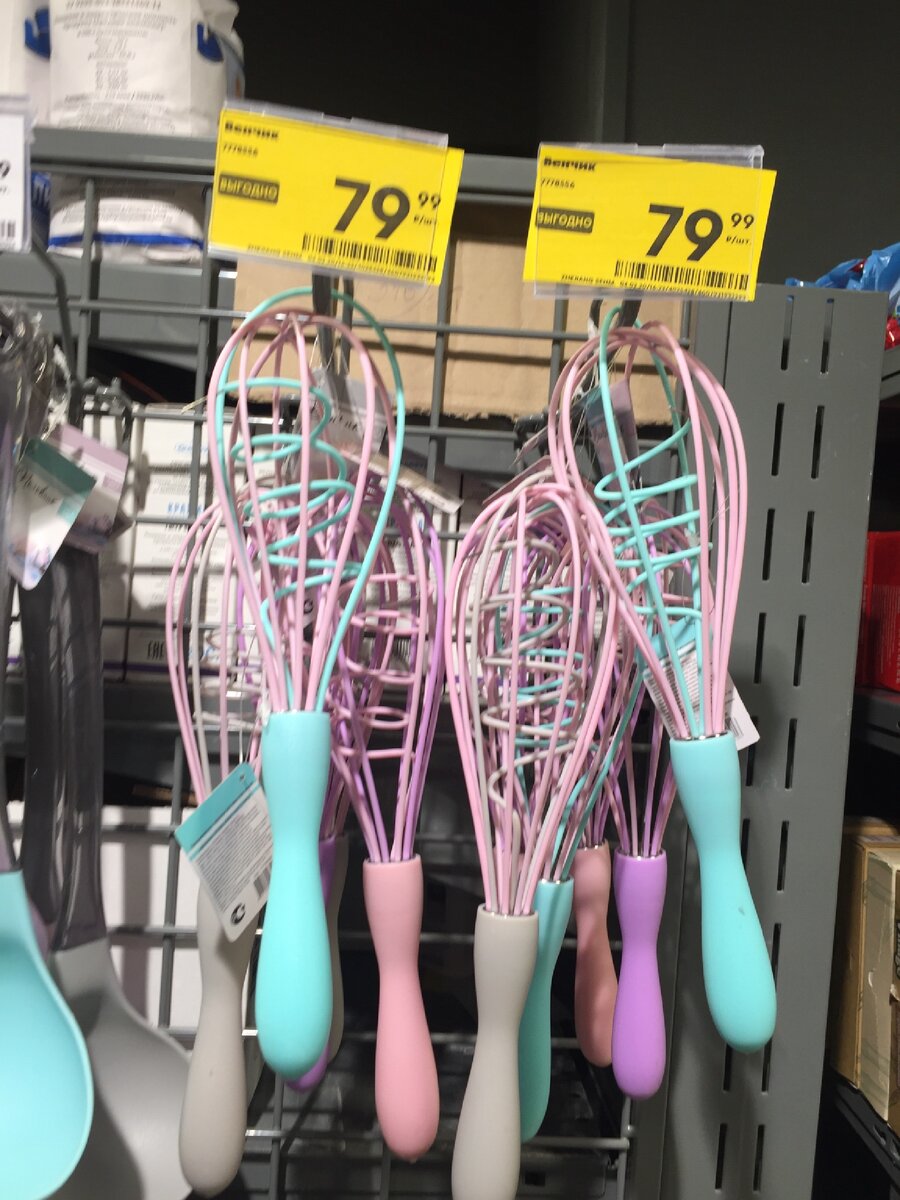 Несколько раз в неделю забегаю в Пятерочку за продуктами, хватаю только то, что мне надо и убегаю дальше по своим делам. Но вчера у меня было время и желание для исследования ассортимента в магазине у дома. Честно говоря, я приятно удивилась. Оказалось, в Пятаке есть классные товары для кухни по хорошей цене не выше, чем на Алиэкспресс. И это не единственное преимущество перед китайцами: не надо ждать доставку и есть возможность посмотреть и пощупать товар перед покупкой. Сочетание цветов в оформлении, на мой взгляд, подобрано идеально. Можно заморочиться и собрать целую коллекцию в одном оттенке, подходящем под гарнитур вашей кухни. Пластиковые венчики с удобной ручкой От количества оттенков глаза разбегаются. Хочется купить каждый) Дозатор для бутылки Лично я такое приспособление не использую, стало интересно проверить его на функциональность. Терка для фруктов Отличная помощь для мамочек. Очень удобно в таких мисочках перетерать в пюре малышам яблочко, банан, грушу и другие фрукт