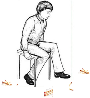 Участники конкурса сидят на стуле и не касаясь пола ногами собирают разбросанные вокруг стула спички громко их считая.