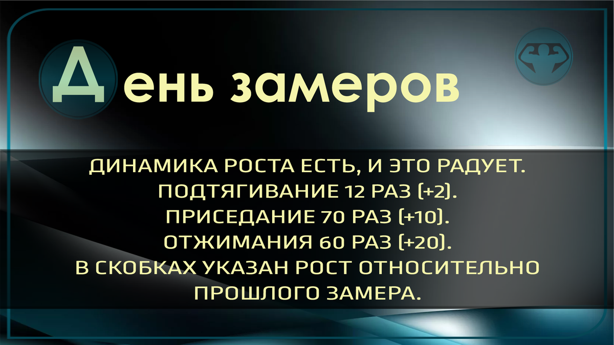 Привет. Что-то я долго тянул с этим днем, но он все же настал. Как-то так получилось на подсознательном уровне что-ли, что прошло ровно 100 дней с моих прошлых размеров. Когда просматривал видео, то заметил, что я отжимаюсь не совсем правильно. Ну, не совсем неправильно, просто в моем исполнении задействуется гораздо меньше мышц, чем если бы я выпрямлял полностью руки. За 100 дней я вырос, но вам может показаться, что рост незначительный. И это верное замечание. Дело в том, что чем дальше я буду расти, тем незначительнее будут увеличиваться мои результаты. Это на первых порах люди вырастают в 3-5-10 раз, а затем за каждый дополнительный подход приходится много-много тренироваться. У всех есть предел, но и его можно преодолеть упорными тренировками. Ниже на картинке мои результаты, чего я достиг за 250 дней. Напомню, что раньше я: