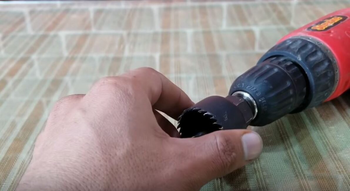 В днище конструкции на стороне, противоположной от вентилятора, дрелью с «короной» делаем небольшие отверстия, поверх которых устанавливаем сеточки (во избежание попадания внутрь конструкции насекомых.