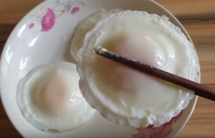 Если вам надоела обычная яичница по утрам, то попробуйте приготовить японский вариант этого блюда. Получится оригинально и очень вкусно Готовится такой восточный завтрак за несколько минут. Приготовление Чтобы получилось такое необычное блюдо, вам понадобится сковорода и половник. Из ингредиентов берете яйца, соль и специи по вкусу. 1. Сначала наливаете в сковороду воду (около 3-4 см) и ставите на огонь. 2. В половник разбиваете одно яйцо. Солить и добавлять приправы нужно в конце приготовления. 3. В кипящую сковороду опускаете половник, только следите, чтобы в него не попала вода. 4. Когда яйцо полностью побелеет (примерно через 10 с), зачерпываете половником немного воды, поддеваете яйцо и опускаете его в воду. Таким образом оно еще готовится несколько минут. Если вы любите всмятку, то достаточно подержать 1,5-2 минуты. 5. После этого достаете яйцо из воды, солите, сыпете приправы и подаете на стол. Вот такая оригинальная яичница у вас получится. Можно вместо вилок взять палочки, зав